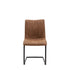 A retro classic styled brown faux leather chair pair, with decorative stitching detail and sleek bronzed cantilever base. SET OF TWO