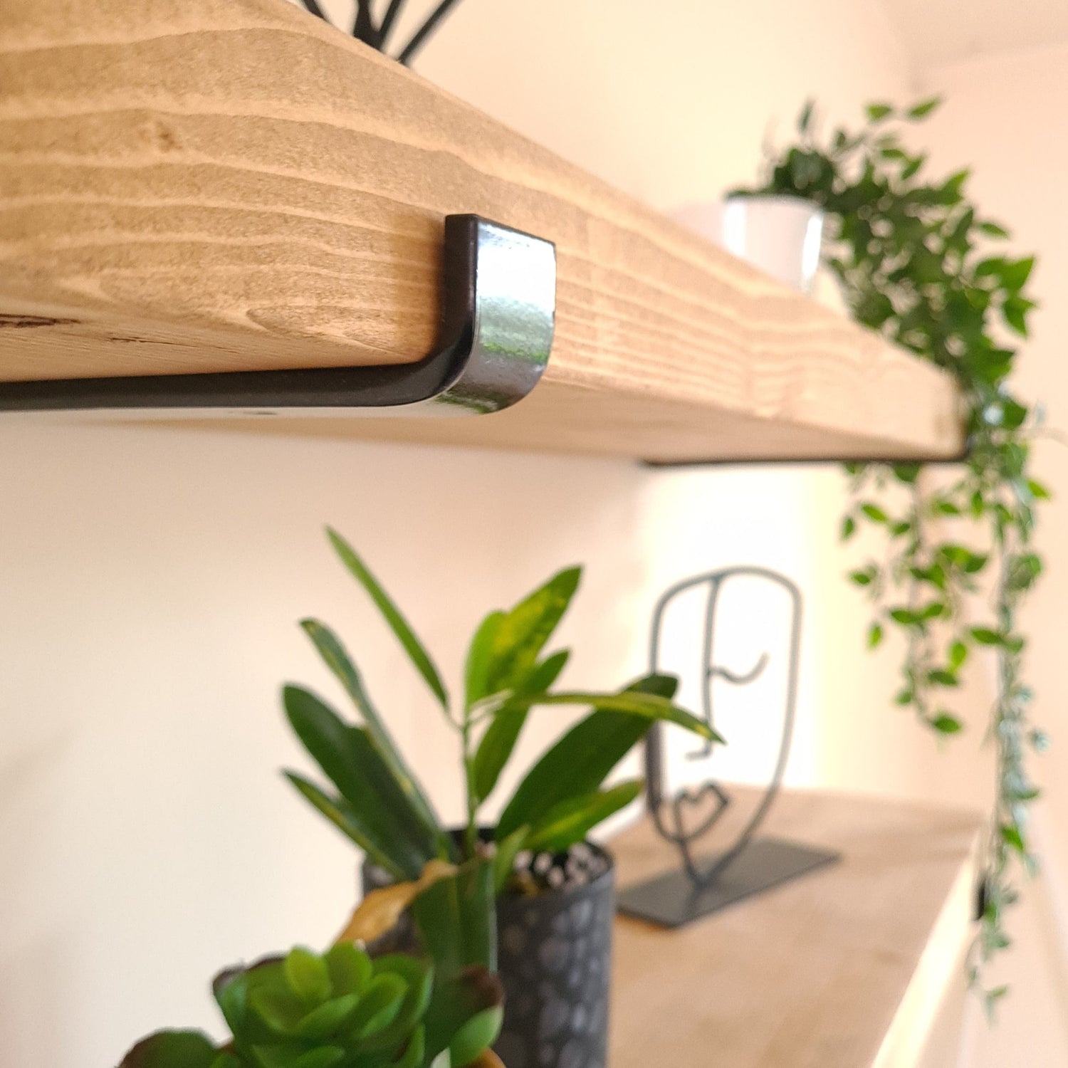 Comes as a set of two shelves with black seated brackets Included, These bespoke rustic shelves are fabricated from recycling timber. Perfectly paired with trailing plants these versatile shelves are an ideal finishing touch to any room.