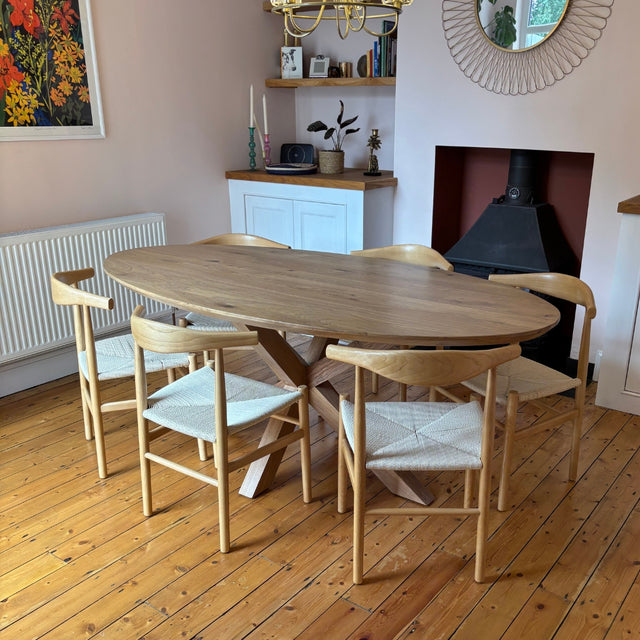 Rustic Solid Oak Oval Dining Table - Central Spider Legs
